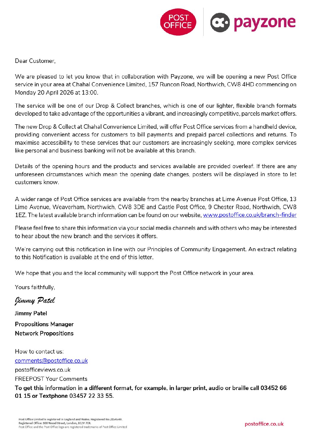 Runcorn Road Post Office, Barnton — New Drop & Collect Service